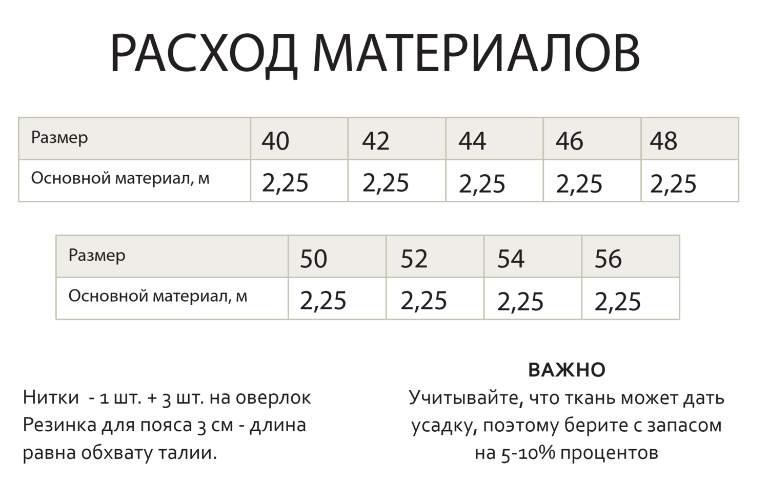 - Готовые выкройки изделия выбранного размера (40-56) в формате PDF для A4 и плоттера