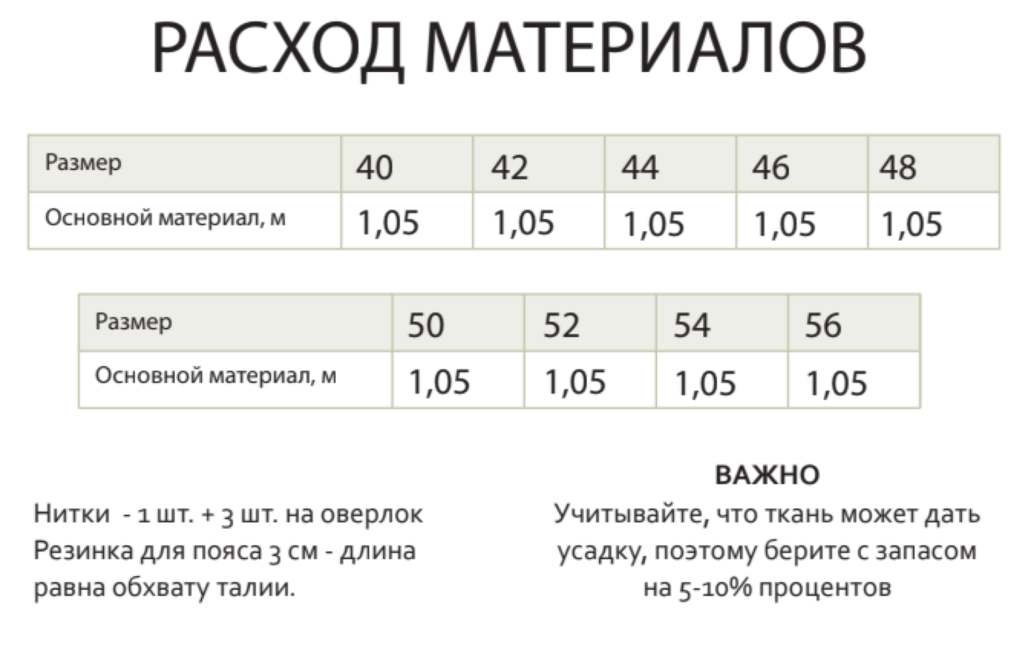 - Приложение с дополнительной информацией: прибавки, расход ткани, таблица с мерками, необходимое оборудование и пр.