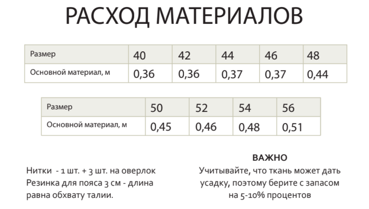 - Готовые выкройки изделия выбранного размера (40-56) в формате PDF для A4 и плоттера