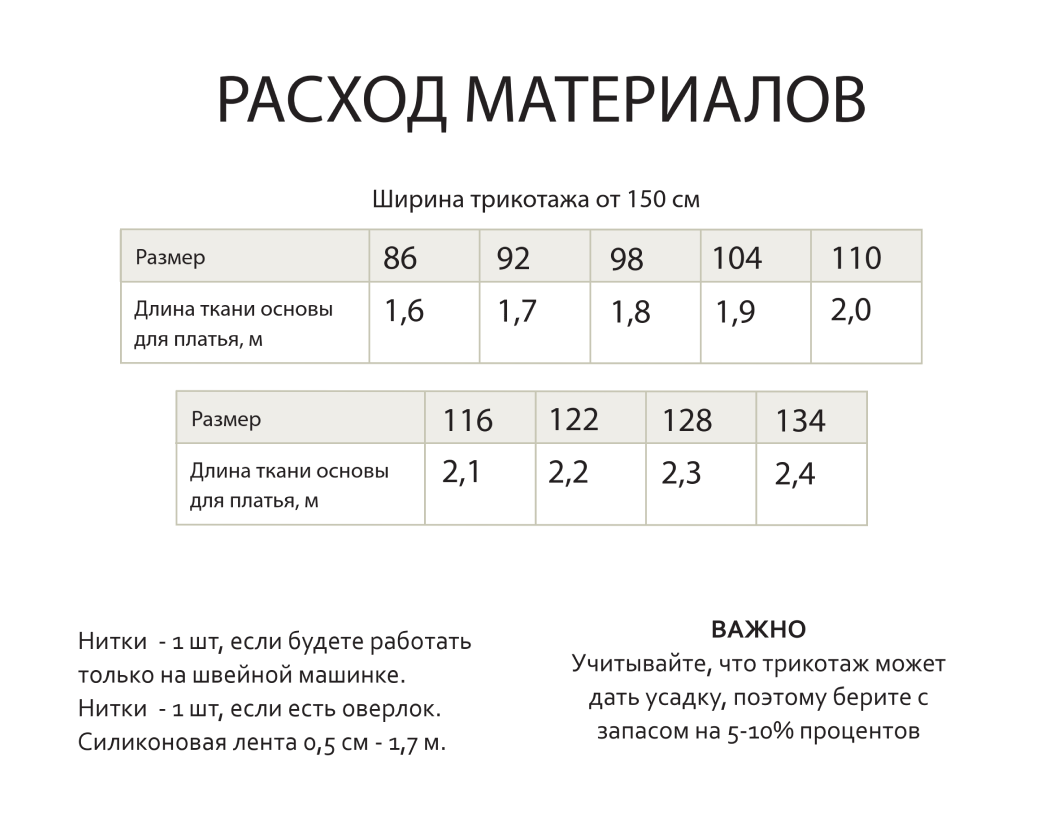 - Приложение с дополнительной информацией: прибавки, расход ткани, таблица с мерками, необходимое оборудование и пр.